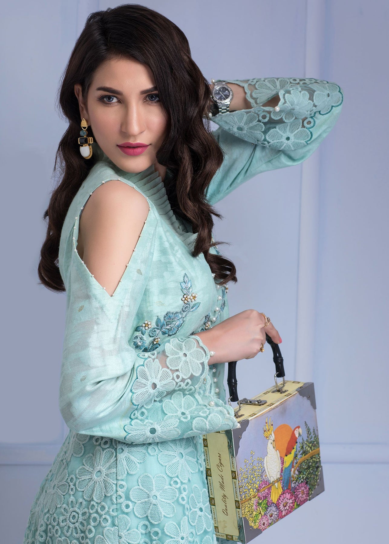 All outfits have chiffon dupattas.