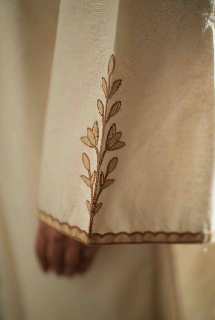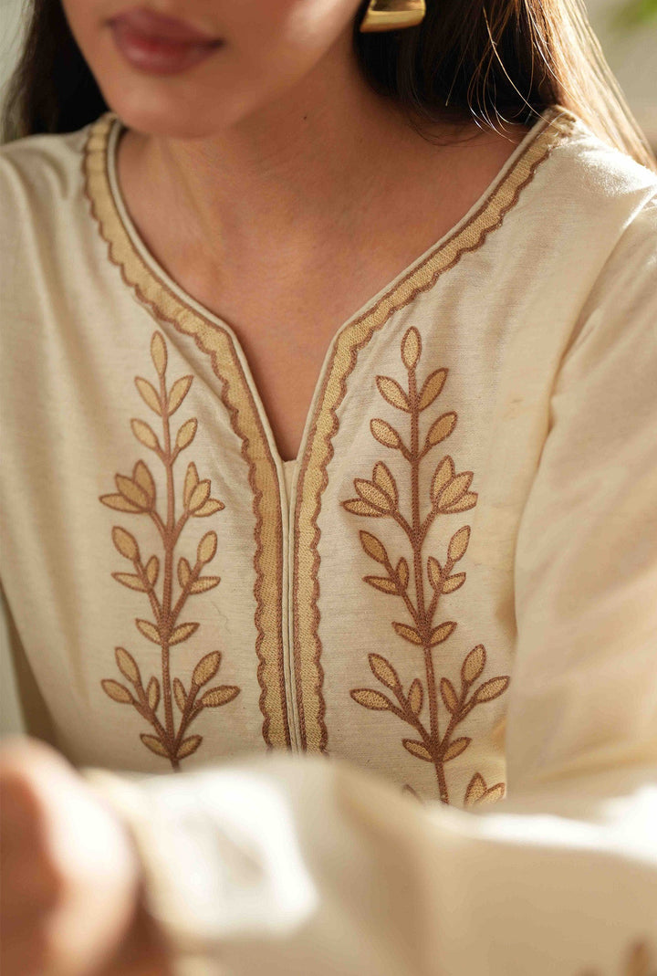 Naaz Kurta with an embroidered neckline and sleeves has a round daman with a loose fit silhouette making it a perfect everyday ensemble. Model is wearing Small size